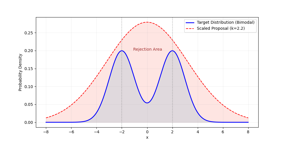 - 以概率 $\frac{\pi(x)}{k \cdot q(x)}$ 接受这个样本。